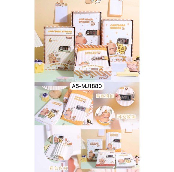 DIÁRIO CADERNO C/ SENHA CAPIVARA REF: A5-MJ1880 --------CX:48PÇS/MIN:12PÇS -BOX:12PÇS
