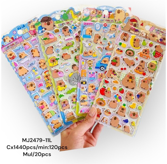 MJ2479-11L/ CARTELA ADESIVA DE PAPEL, COM DESENHOS CAPIVARA:CX:1440PÇS/MIN::120PÇS-MUL:20PÇS