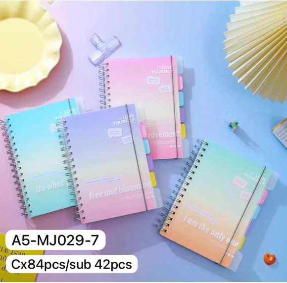 CADERNO. REF: A5-MJ029-7 ---------CX:84 PÇS /MIN:42PÇS -MUL:21PÇS