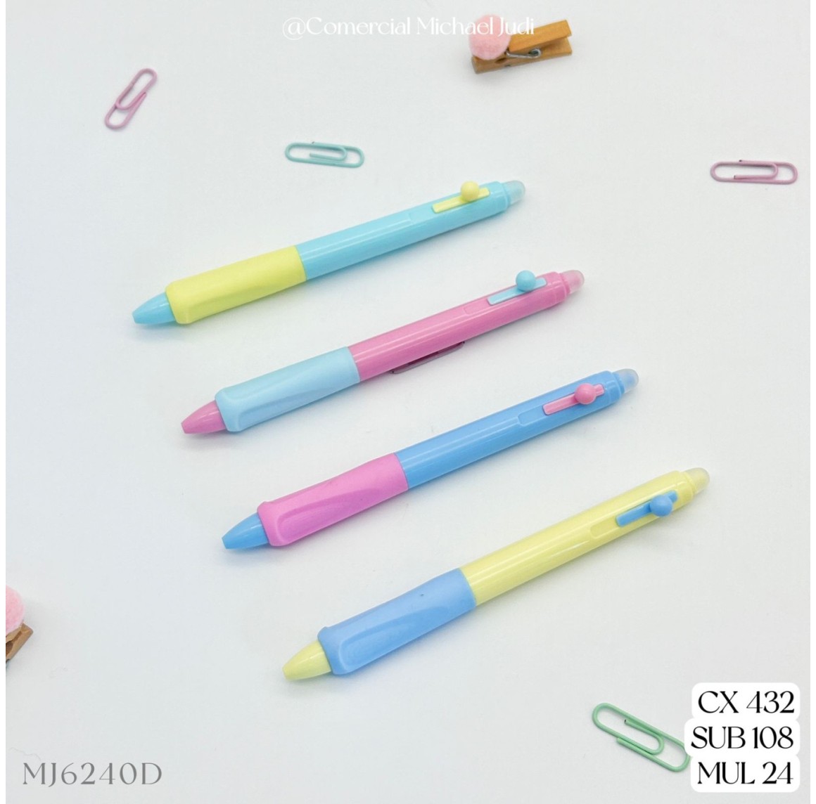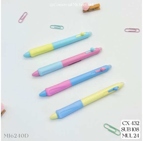 REF: MJ6240D CANETA ESFEROGRAFICA COM APAGADOR E OUTO LADO PARA ESCRITA, COM CORPO EMBORRACHADO ----- CX:432PÇS/MIN:120PÇS/MUL:24PÇS