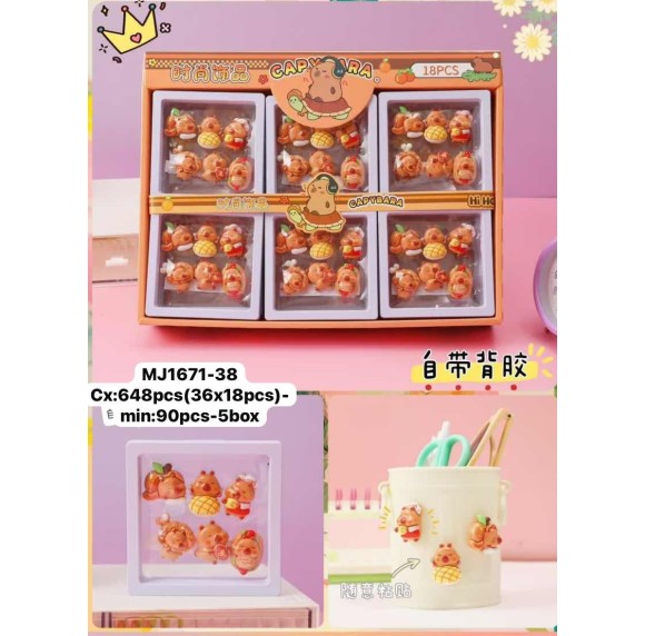 REF:MJ-1671-38A/B BX C/18 CARTELA ADESIVA DE PAPEL 3D CAPIVARA A/ FRUTINHAS B --------------- CX:648PÇS/MIN:90PÇS-MUL:18PÇS