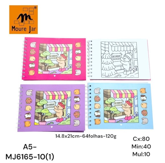 REF:A5MJ 6165-10 1 CADERNO PARA PINTAR ESTILO BOBBIE GODS --------------- CX:80PÇS/SUB:40PÇS