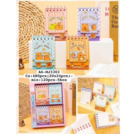 CADERNO REF:A6-MJ-3303 CAPIVARA ------------- CX:480PÇS/MIN:120PÇS- MUL:24PÇS