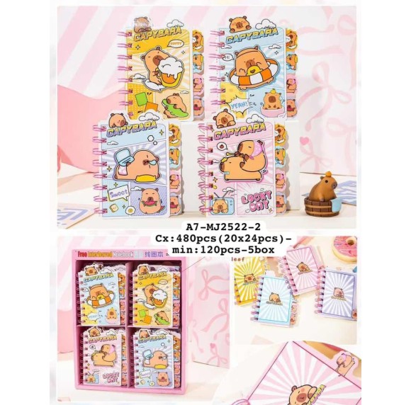 CADERNO. REF:A7-MJ-2522-2 CAPIVARA ------------------- CX:480PÇS/MIN:120PÇS- MUL:24PÇS