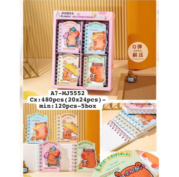 CADERNO. REF:A7-MJ-5552 CAPIVARA --------------- CX:480PÇS/MIN:120PÇS- MUL:24PÇS
