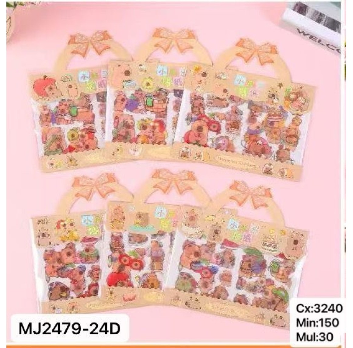 REF:MJ2479-24D BX C/30 CARTELA ADESIVA DE PAPEL, COM DESENHOS CAPIVARA / LABUBU --------------- CX:3240PÇS/SUB:150PÇS -MUL:30PÇD