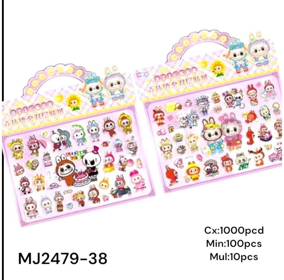 REF:MJ2479-38 BX C/10 CARTELA ADESIVA DE PAPEL, COM DESENHOS. LABUBU / CAPIVARA ------------ CX:1000PÇS/MIN:100PÇS-MUL:10PÇS