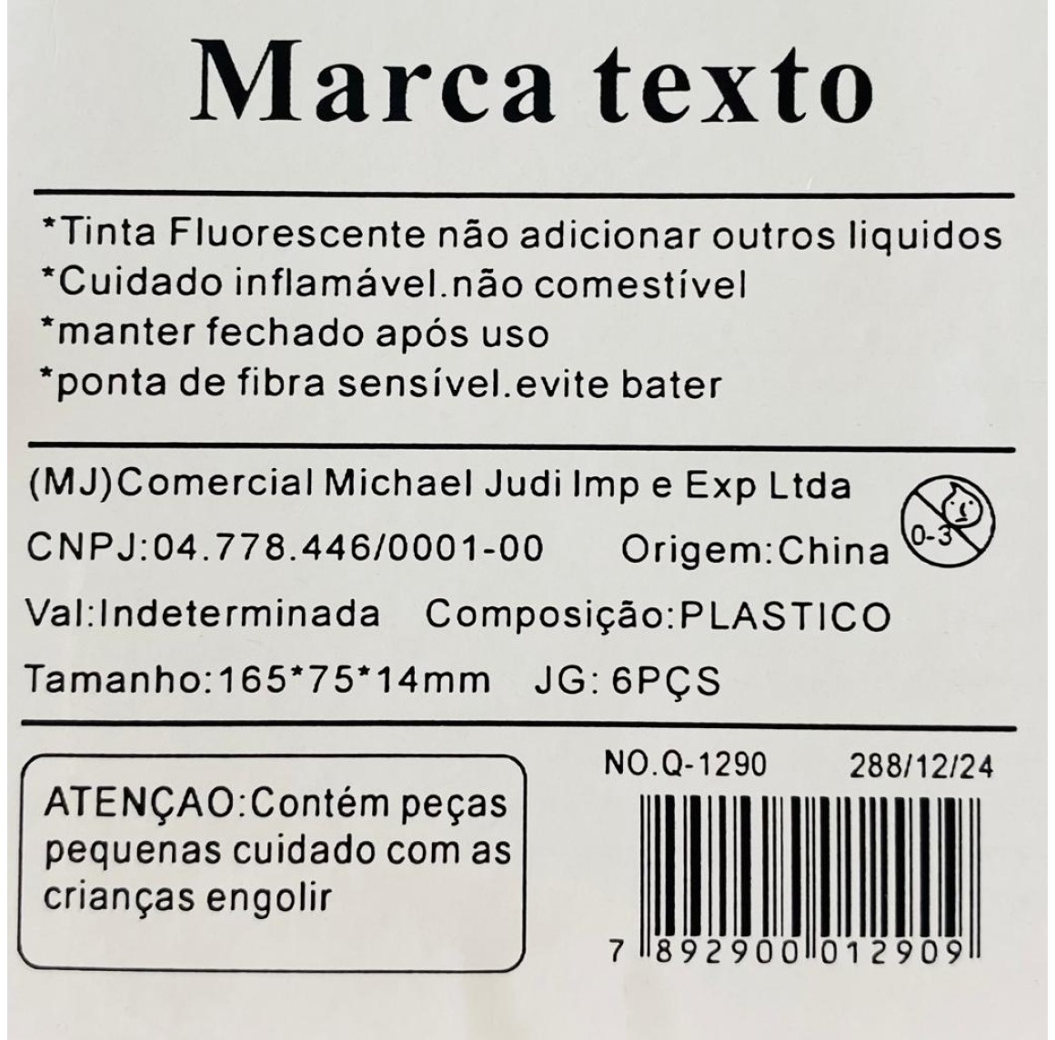 REF:Q-1290 MARCADOR DE TEXTO COM PONTA DE FELTRO --------------- CX288PÇS/MINIMO 72PÇS/MUL/24
