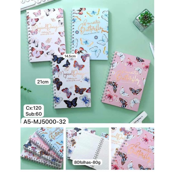 CADERNO. REF:A5-MJ-5000-32 --------------- CX:120PÇS/SUB:60PÇS