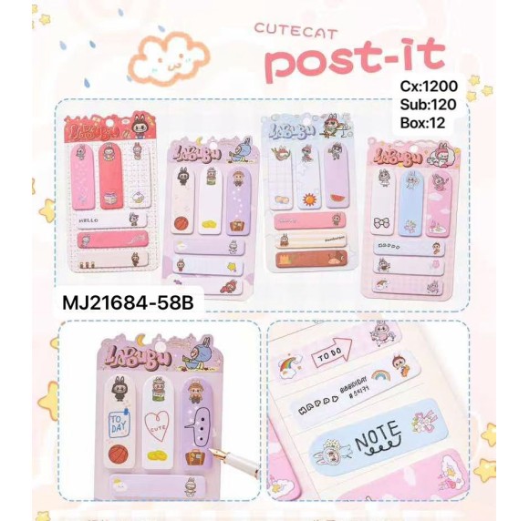 REF: MJ-21684-58B LEMBRETE DE PAPEL, AUTO-ADESIVO LABUBU ----------- CX:1200PÇS/SUB:120PÇS-BOX:12