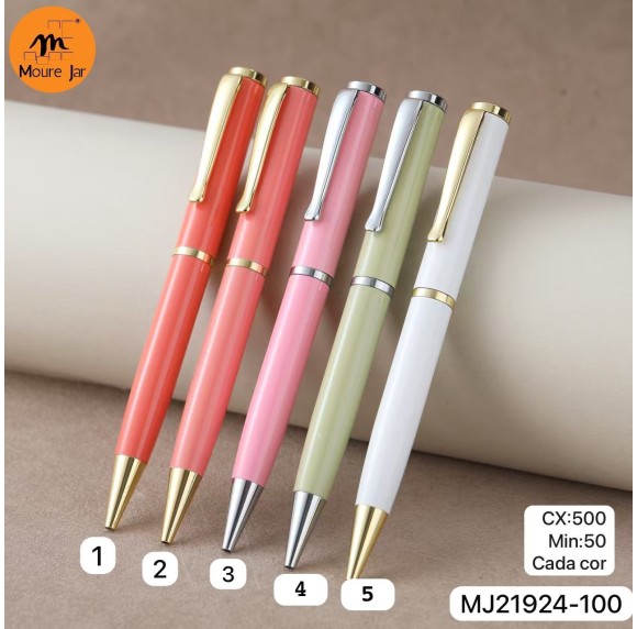 - REF: MJ-21924-100 CANETA ESFEROGRAFICA, RETRATIL, METALICA 50 CADA COR ----------- CX 500/MIN50