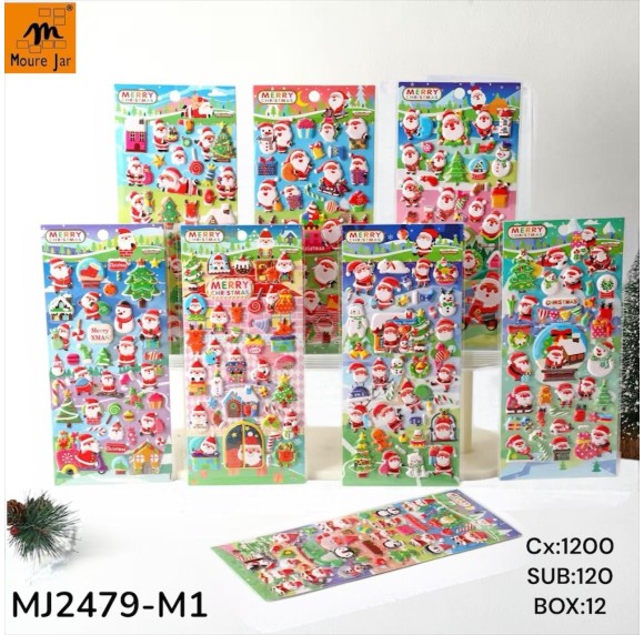 REF: MJ2479-M1 CARTELA ADESIVA DE PAPEL, COM DESENHOS NATALINOS ---------------- CX:1200PÇS/SUB:120PÇS-BOX:12PÇS