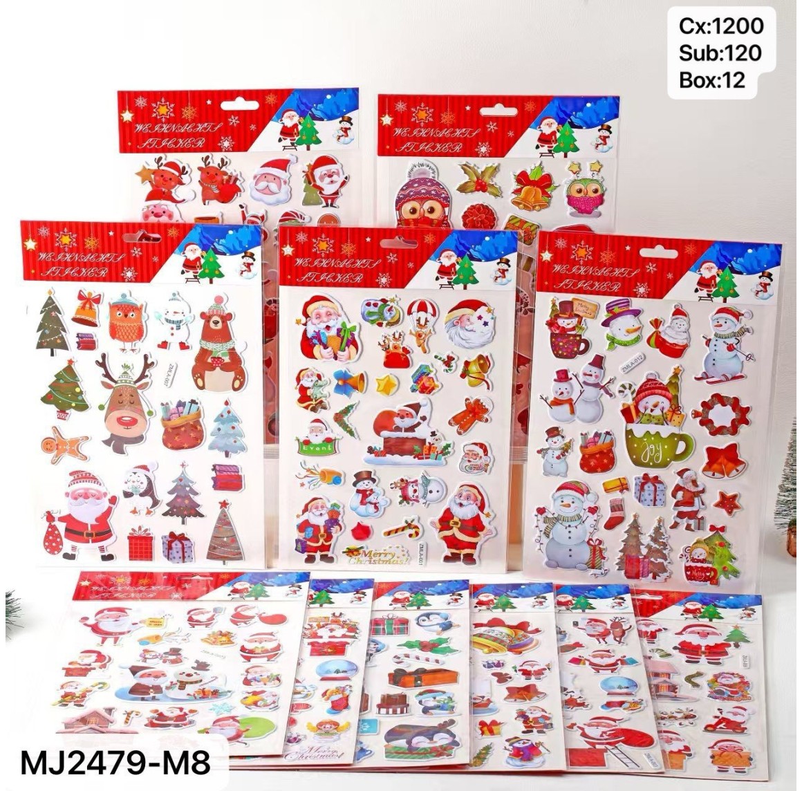 REF: MJ2479-M8 CARTELA ADESIVA DE PAPEL, COM DESENHOS NATALINOS ---------------- CX:1200PÇS/SUB:120PÇS-BOX:12PÇS